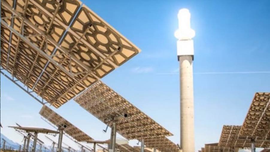Ternyata, teknologi yang digunakan bukan panel surya biasa (PV), melainkan sistem Concentrated Solar Power (CSP) dengan penyimpanan energi termal (thermal energy storage) berbasis garam cair.