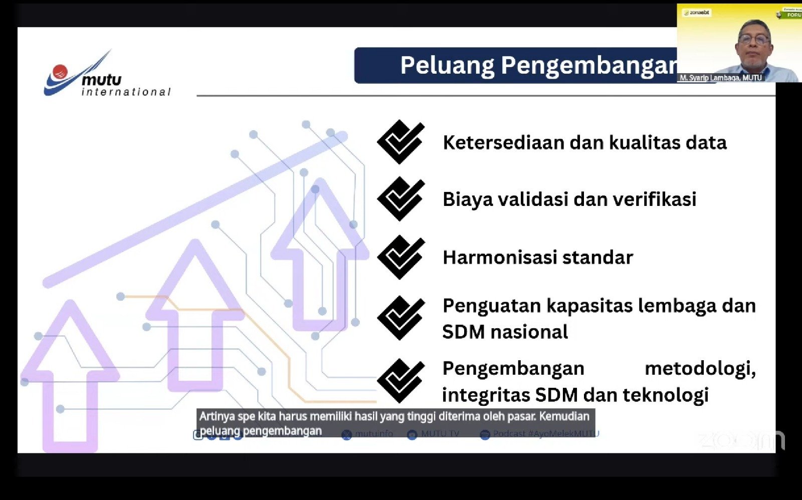 Sejalan dengan hal tersebut, M. Syarip Lambaga, Deputy Director PT Mutuagung Lestari Tbk, menjelaskan bahwa sebagai lembaga LVV, Mutuagung menjalankan proses validasi dan verifikasi Gas Rumah Kaca dengan berlandaskan kepatuhan terhadap regulasi pemerintah, ketentuan pemilik skema wajib maupun sukarela, serta standar lembaga akreditasi.