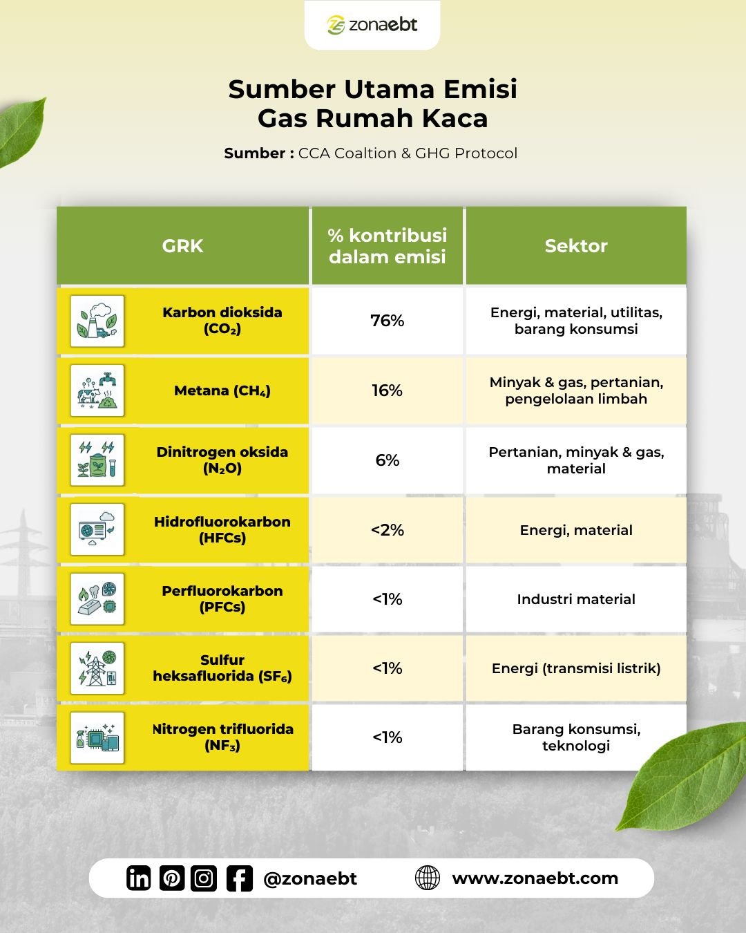 Sobat EBT Heroes! Ketika membahas perubahan iklim, kita sering mendengar istilah gas rumah kaca (GRK). Gas-gas ini berperan menahan panas di atmosfer bumi sehingga suhu global meningkat. Namun, tidak banyak yang mengetahui bahwa emisi tersebut tidak hanya berasal dari satu jenis gas saja.