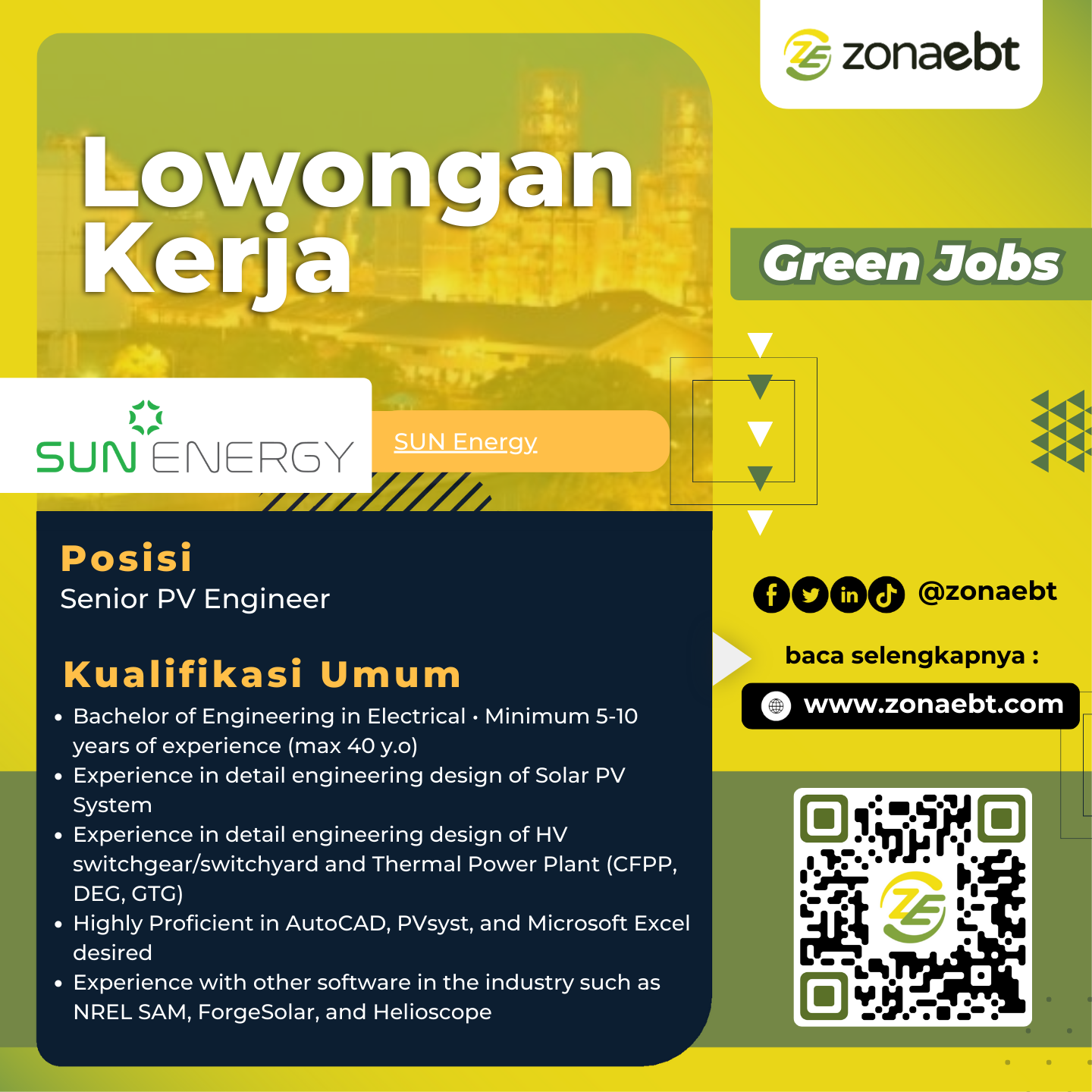 - Bachelor’s degree in Electrical, Renewable Energy or equivalent